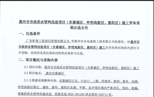 惠州市水電建筑工程有限公司勞務(wù)供應(yīng)商庫擴(kuò)庫評審結(jié)果公示……